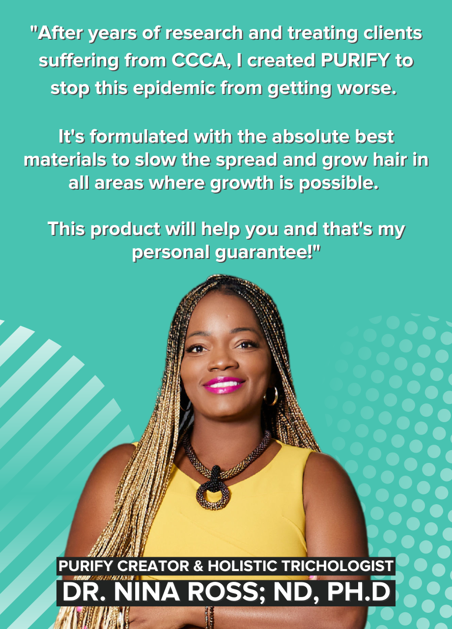 PURIFY will SLOW THE SPREAD of CCCA on your scalp and help to GROW HAIR QUICKER in non-scarring areas.